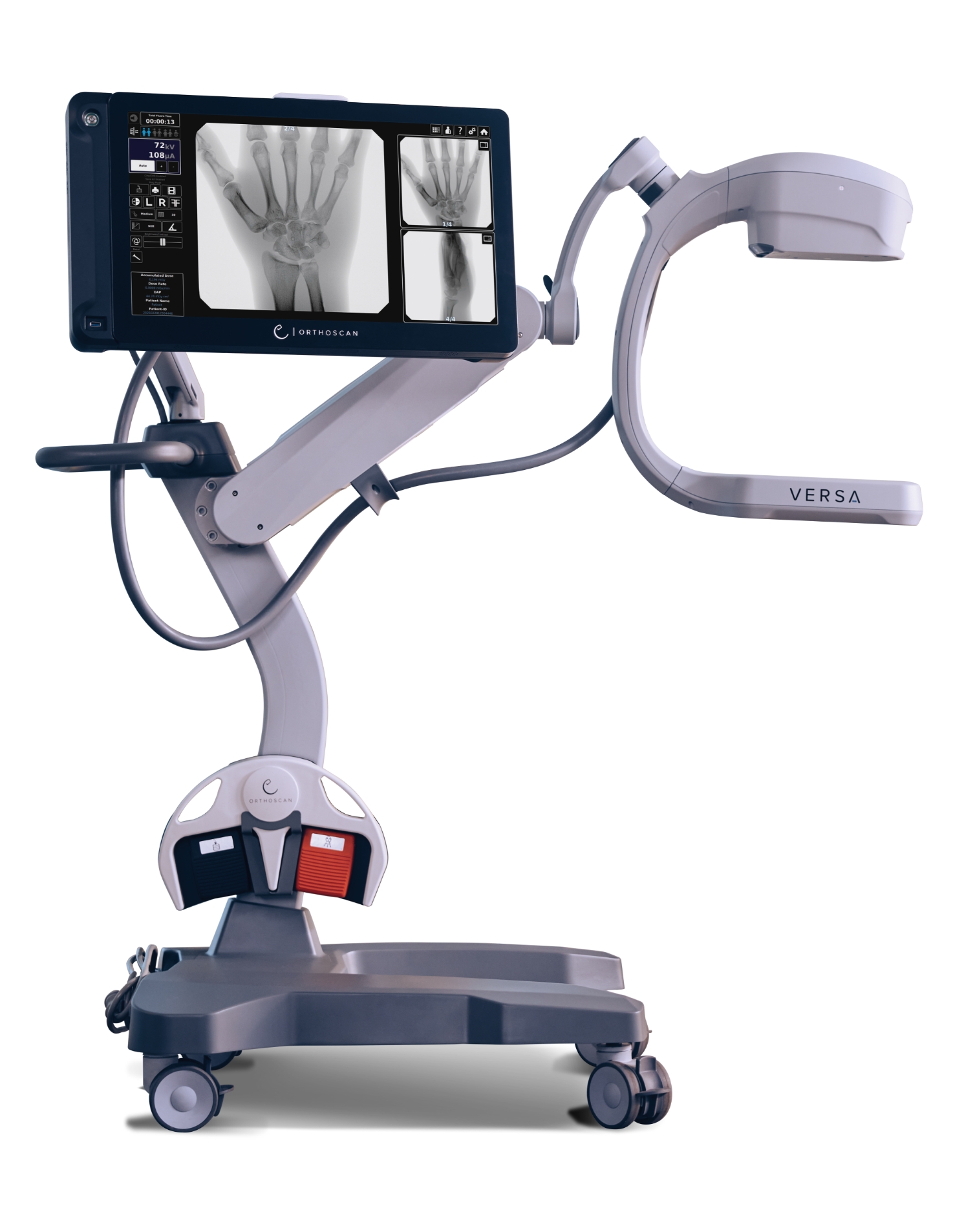 Designed for unparalleled mobility, Orthoscan VERSA is a fully portable imaging solution that seamlessly integrates into any clinical setting—whether on a desktop or an articulating monitor cart.