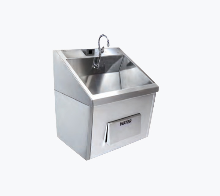 Each of Skytron’s scrub sinks allows hands-free operation with the standard knee-kick control. Preset water temperatures are dispensed automatically and the aerator can be adjusted to provide either a stream or rosette spray. Skytron's stainless scrub sinks will not corrode because we use high-quality stainless steel throughout the entire structure of the sink. This lengthens product life while lowering total cost of ownership.